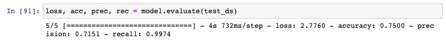 x = layers.Dense( 1,# 2개의클래스는 1로 세팅하도록 한다!!! 중요한 파트이다.이진분류 kernel_initializer=initializers.RandomNormal(stddev=0.01), kernel_regularizer=_gen_l2_regularizer(use_l2_regularizer), bias_regularizer=_gen_l2_regularizer(use_l2_regularizer), name='fc1000')( x) # A softmax that is followed by the model loss must be done cannot be done # in float16 due to numeric issues. So we pass dtype=float32. x = layers.Activation('sigmoid', dtype='float32')(x) #마지막 레이어 outp에서 출력 뉴런이 하나만 있을 때 softmax를 사용하고 있습니다. 'sigmoid'로 변경하는 것이 유용할 수 있습니다. #이진분류문제이기 때문에 sigmoid 를 씁니다. https://github.com/keras-team/keras/issues/1597 # Create model. return models.Model(img_input, x, name='resnet50') # Create model.---------------------------------------------------------------------------------------------------------------