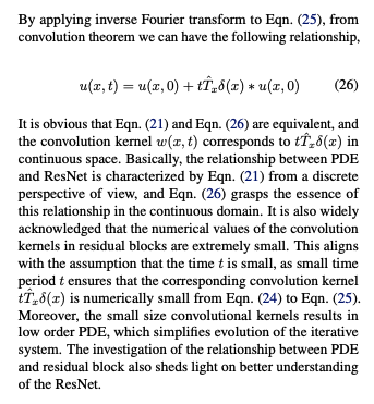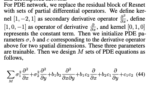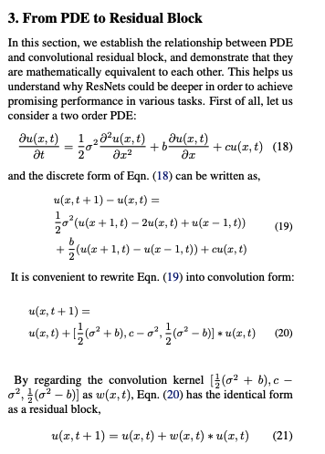 잔차 블록의 컨볼루션 프로세스가 PDE 의 편미분 부분을 추출하는 것과 같다는 것을 밝혔다.