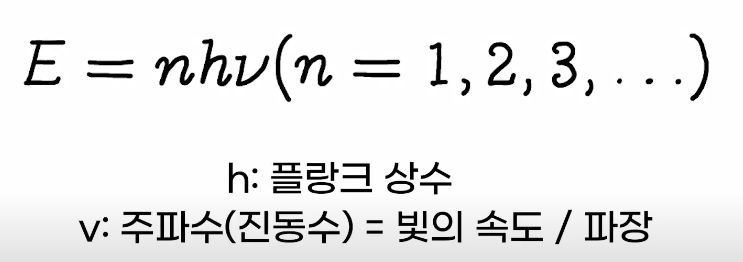 전자기파의 에너지는 플랑크상수에 주파수를 곱한 값의 정수배만 가능하다는 것을 과학자들이 알아낸다...(이 세상은 불연속적이다!)