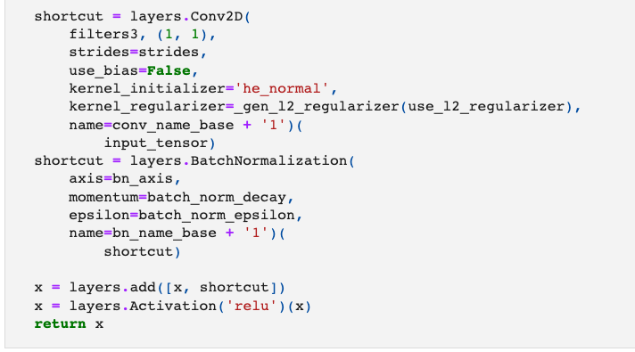 잔차 블록에서는, f 을 (skip-connection weight) 이라고 하고, w를 컨볼루션 커널이라고 가정한다.