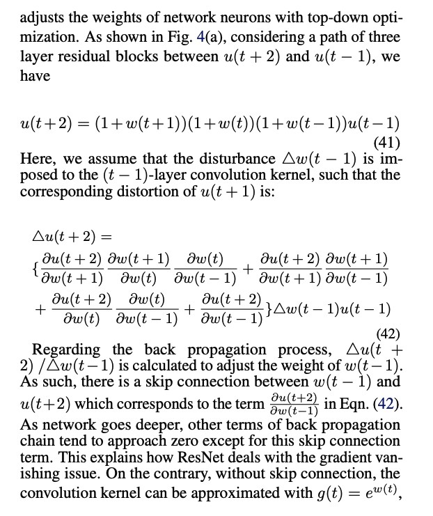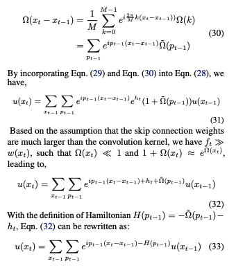 스킵 커넥션이 없다면, 컨볼루션 커널은 g(t) = e^w(t) 로 근사 될 수 있다.