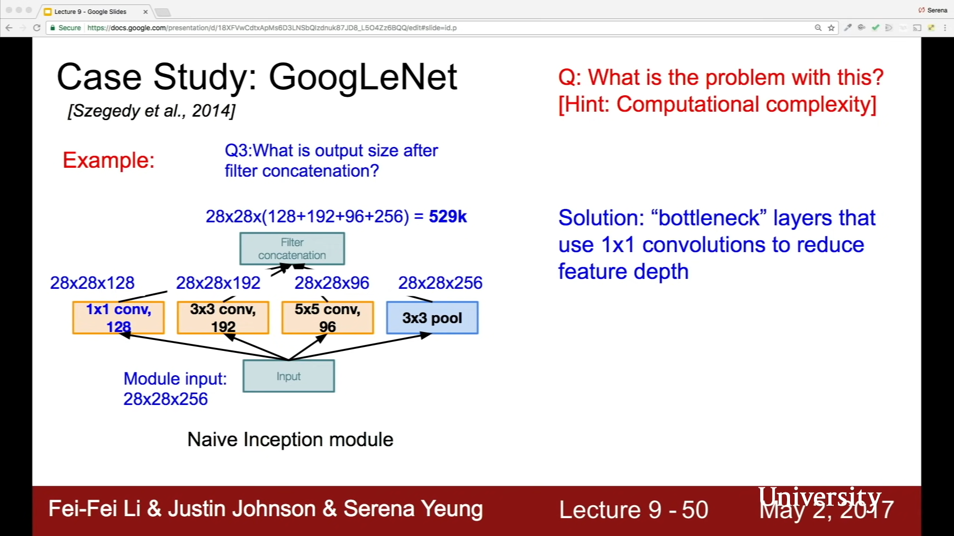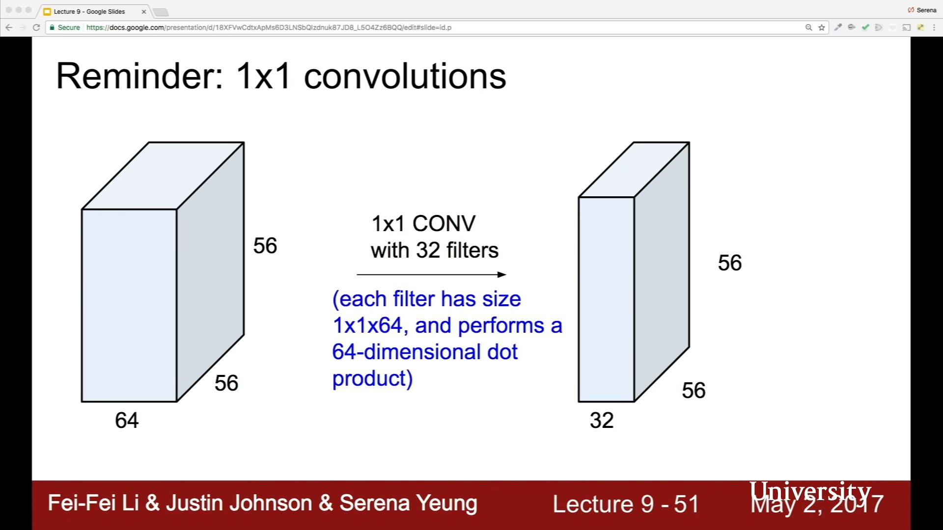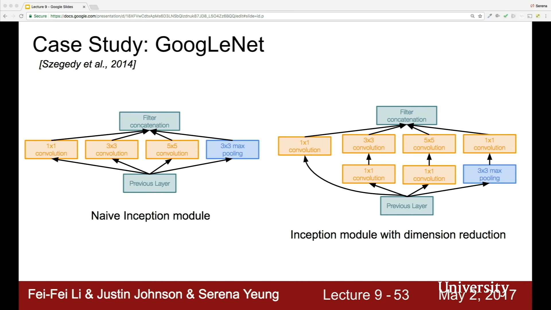 1by1, 3by3, 5by5, pooling --> concat (depth-wise)