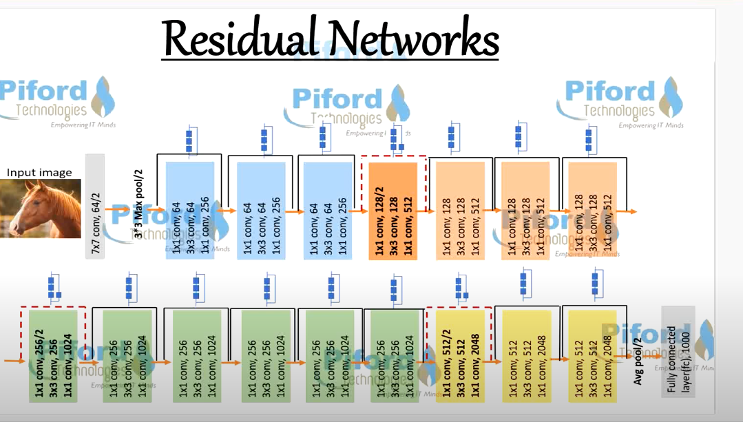 64filters---stride=2&amp;amp;amp;amp;nbsp; 점선이 short- cut connection(1by1 conv)