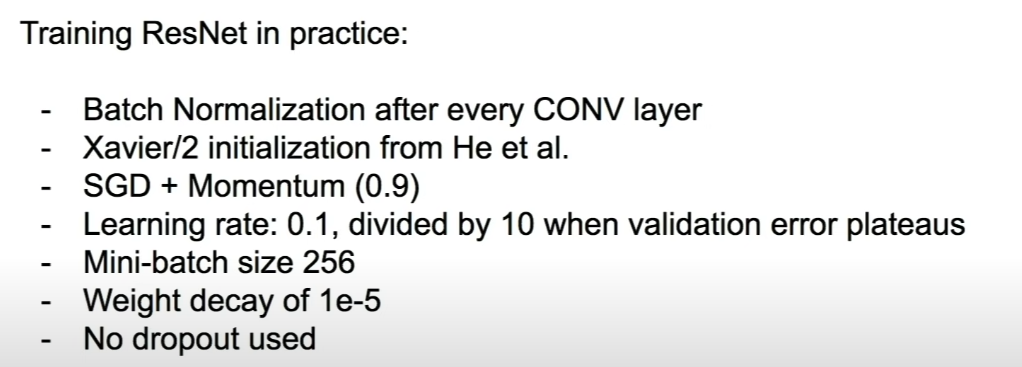 He initialization 을 쓰는데, 컨볼루션 가중치들이 루트(2/N)으로 나눠진다