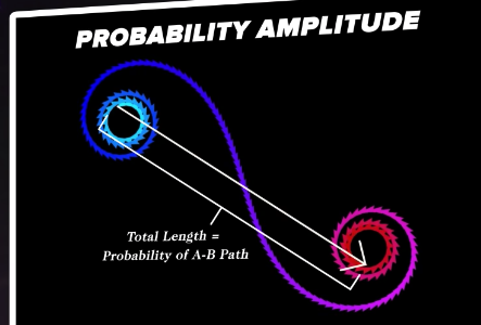 각각의 발생확률 대신 각(each) 궤적이 기여한다. 우리가 확률진폭이라고 부르는것... 슈뢰딩거의 파동 방정식