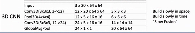 pooling 도 3d 로 이용 (time 제외 3차원을 1/4 함)