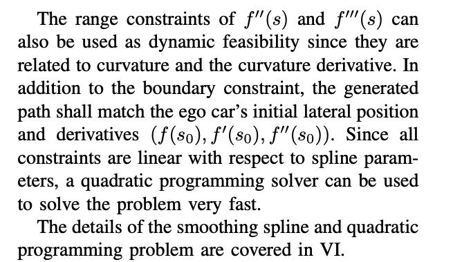 In addition to the boundary constraint, the generated path shall match the ego car’s initial lateral position and derivatives