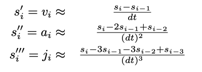 가속도 및 jerk(가속도의 시간미분) 제곱 적분은 속도 프로파일의 부드러움(smoothness) 정도을 설명합니다.