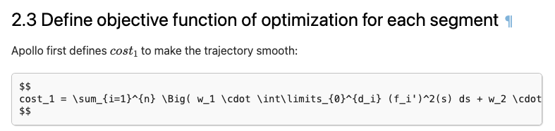 총 에지 cost 함수는 부드러움, 장애물 회피 및 차선 비용 함수의 선형 조합입니다.