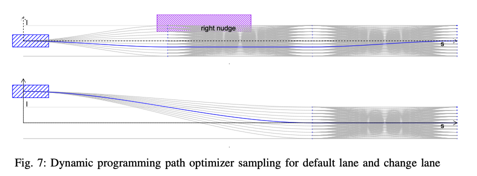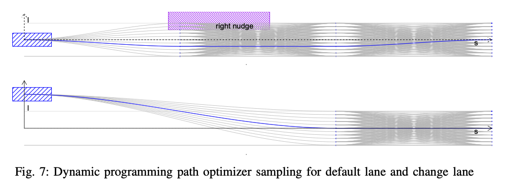도 7에 도시된 바와 같이, 다중 행의 포인트는 먼저 자아 차량보다 앞서 샘플링된다. (path lattice sampling)