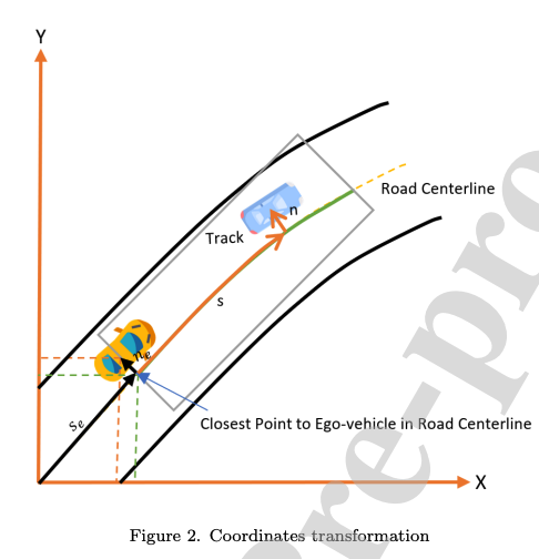 장애물과 자동차의상태는 x,y,theta 에 해당하는 직각좌표계에서 Frenet frame 좌표계로 맵핑된다.