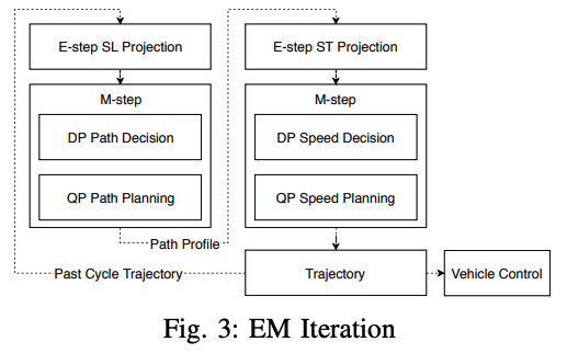 EM 플래너는 경로와 속도를 반복적으로 최적화합니다.