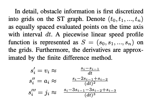 스피드 옵티마이저는 ST 그래프(아까Franet frame 좌표계에 맵핑한) 에 스피드 프로파일을 생성해 냅니다