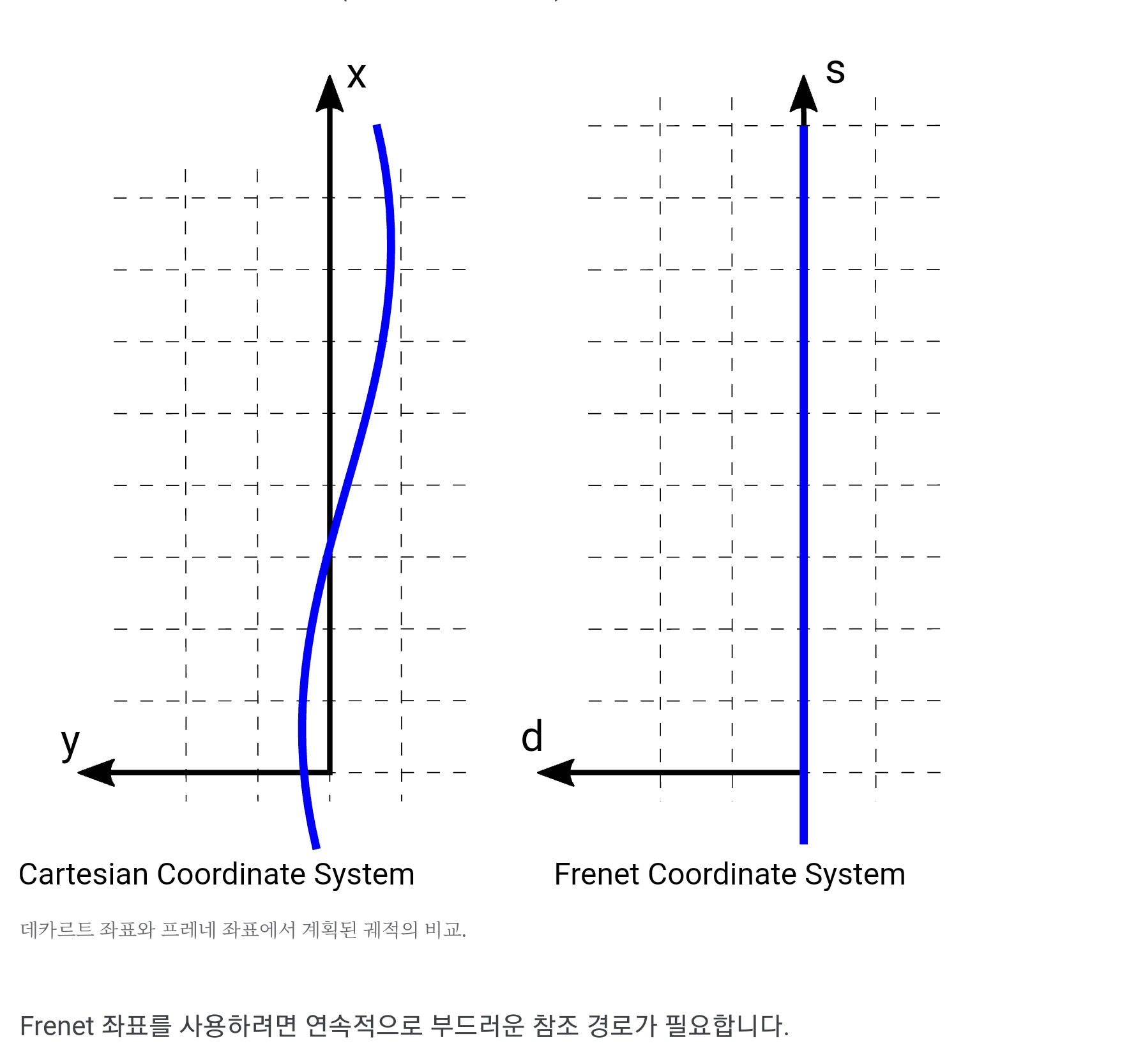 --> 미분: 곡률 --> 두번 미분: 곡률의 미분 을 고려하여 생성된 경로가 매치되어야 한다
