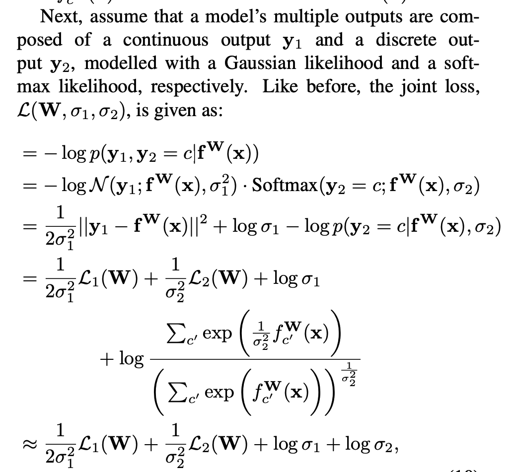 소프트맥스( fW(x) 와 시그마2를 continuous 한 조건으로 받았을때, y2을 추정하는 softmax) 를 곱한다