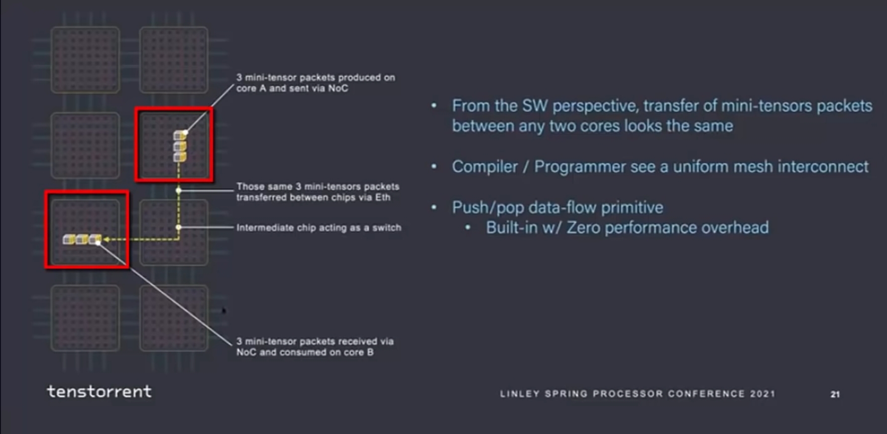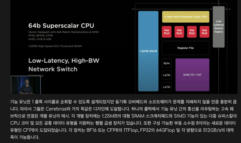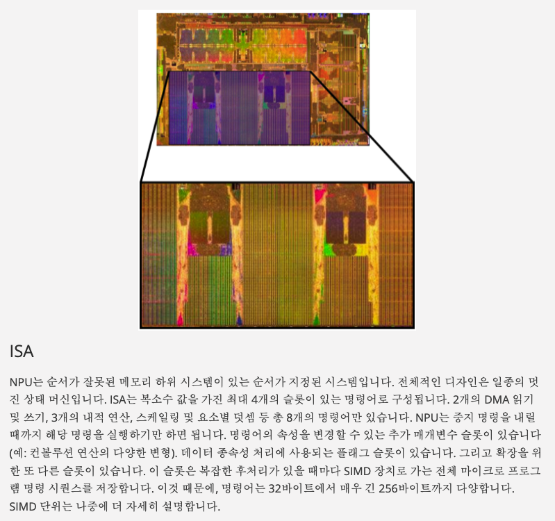 Custom Instruction Set Architecture (ISA, 명령어 집합 세트) 를 이용합니다 (이부분이 놀라운 점! 컴퓨터를 위해 ISA 를 커스텀 함!)Transpose, link, gather 등 의 연산을 위해 최적화 된 듯 합니다.
