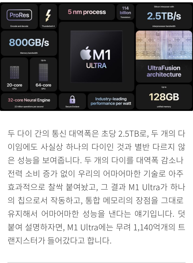 마더보드 대신 독자적인 실리콘 다이 옥사이드 --> 다이 두개를 연결해서 광대역 을 이루어냄