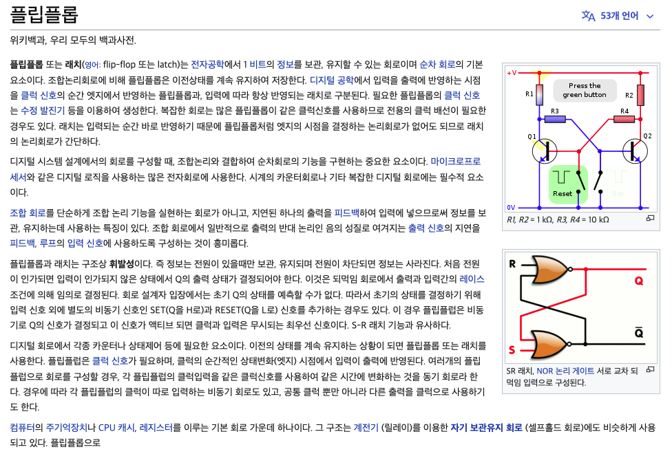 기억하는 순차 회로이다. )
