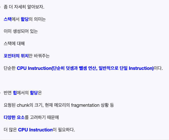 그래서 많은 노력이 필요하기 때문에 최대한 안건드리는 정보들을 넣어둔다....스택은 이미 할당 되어 있는 공간을 사용하는 것이고