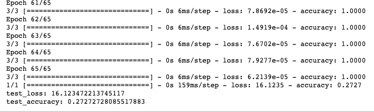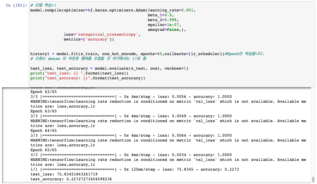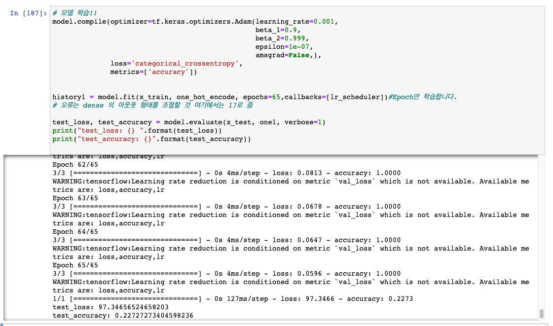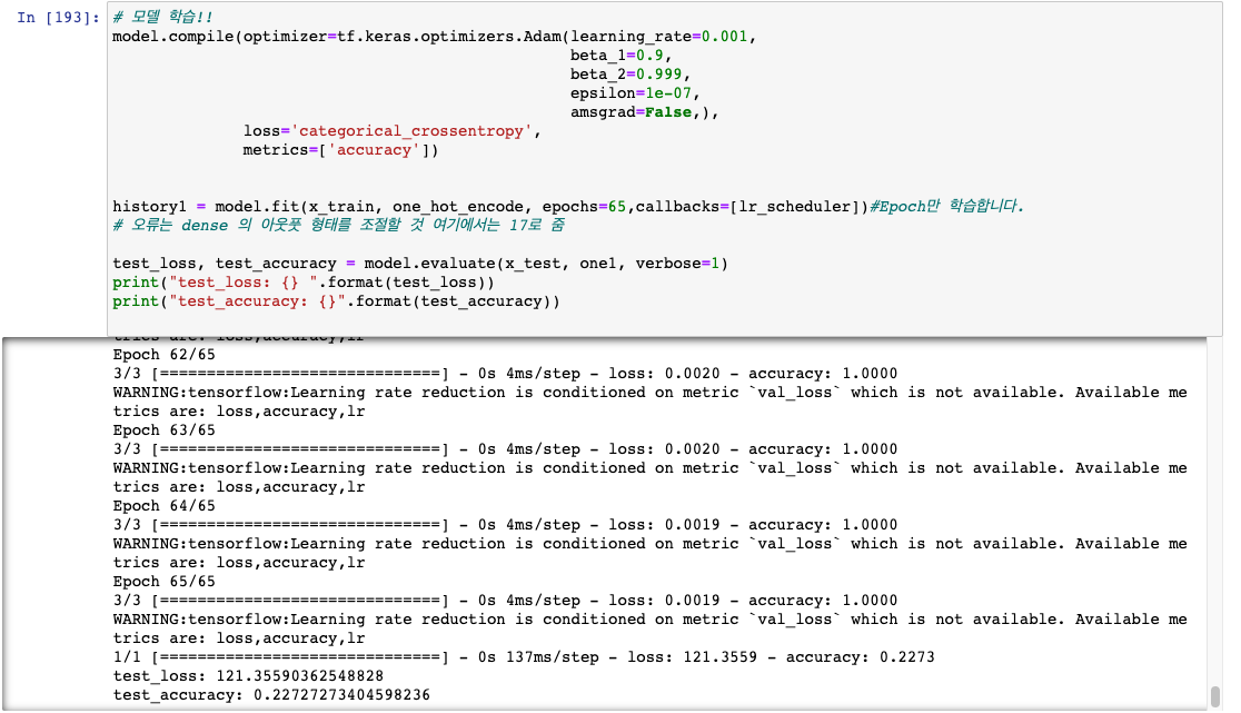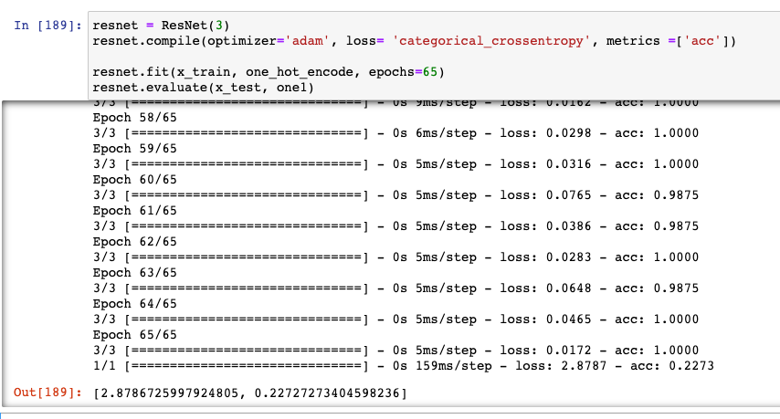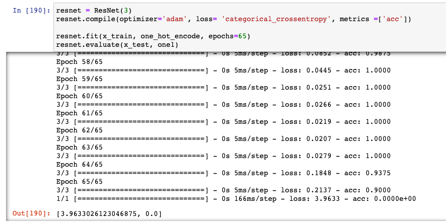 세번째 돌렸을 때 결론 : Resnet 을 썼을 시 Loss 가 현저히 낮게 나오지만, 여러번 돌릴때 acc 가 0 이 될 수 있음에 주의한다.