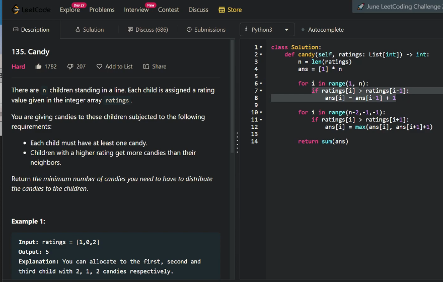 ( 값보다 +1씩하여 오른쪽값에 ) 이거랑 오른쪽값이랑 비교, 더 큰 값을 ans 리스트의 i 번째에 넣는다.