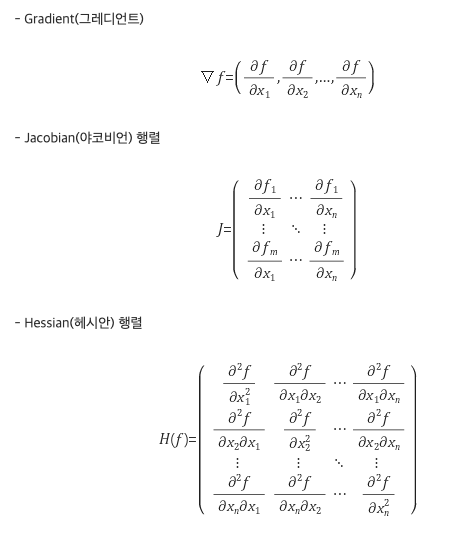 헤시안 행렬은 다음과 같다 2차 미분 식이다. 그레디언트는 1차미분이라 n*1 행렬인데 헤시안은 2차미분이라