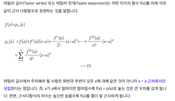 1*n 사이즈의 행렬을 곱해도 된다! 그러면 1*m 행렬이 나오게 될 텐데 , 왜 1/2 이 붙었냐하면 테일러시리즈를 보면된다.
