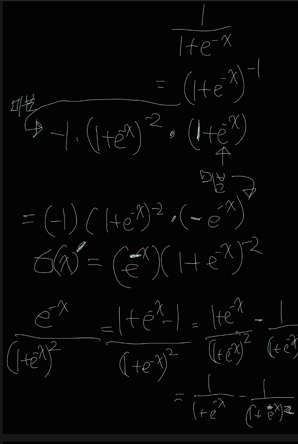 한 노드에서 비선형함수인 시그모이드를 쓰기 때문에 e의 지수부분이 + 로 합쳐지는 것이다.