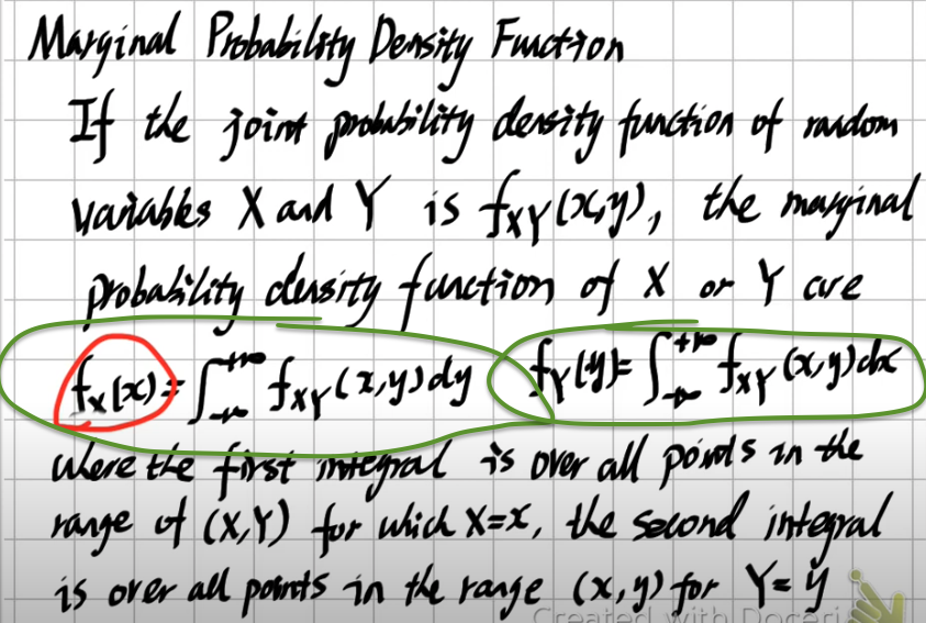 초록색 이 marginal probability . 각 랜덤변수에 대한 PDF 이다. (확률질량함수)