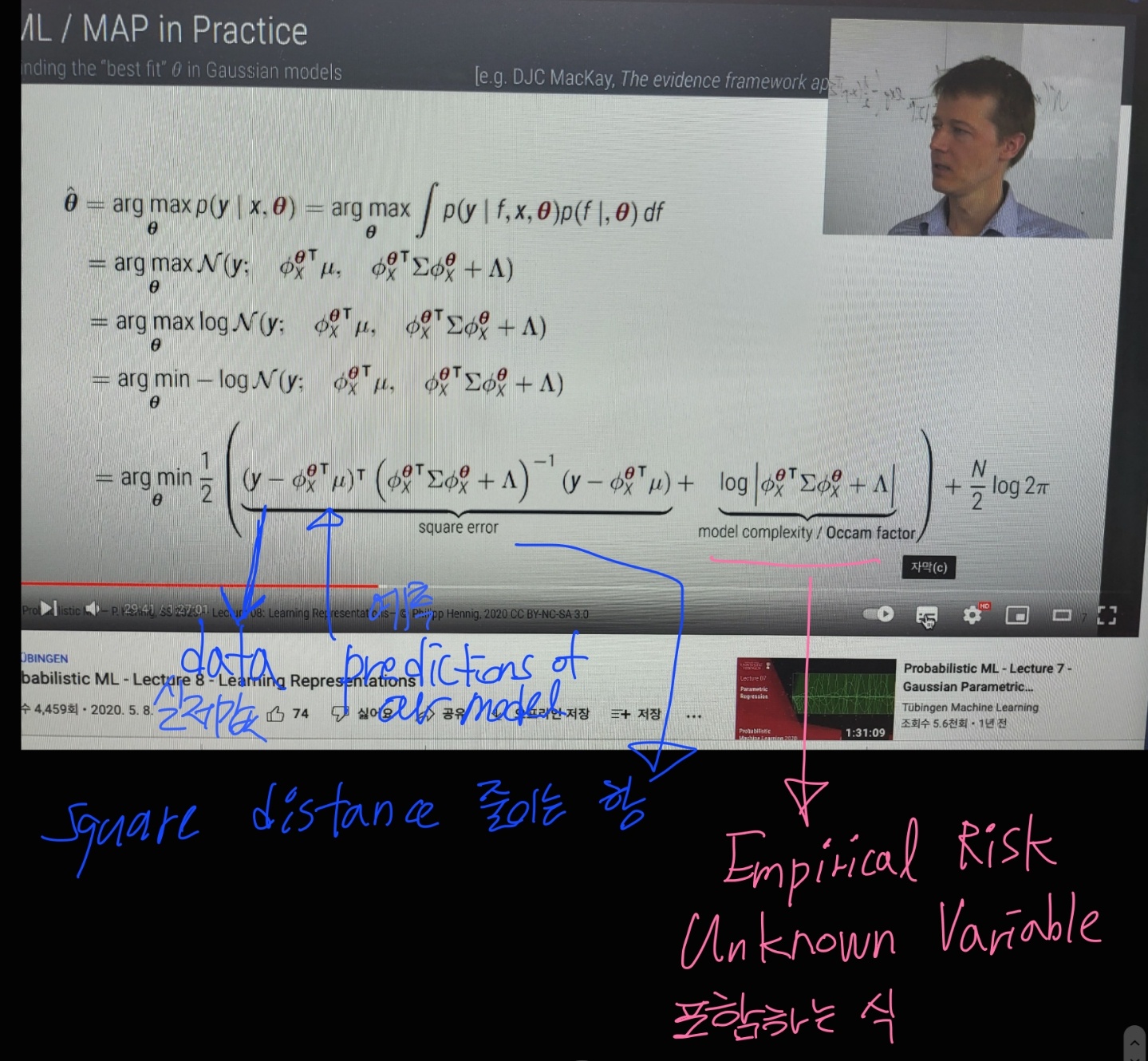 두번째 항은 occam 의 면도기 같은,,,,,,,, log determinant 항이다
