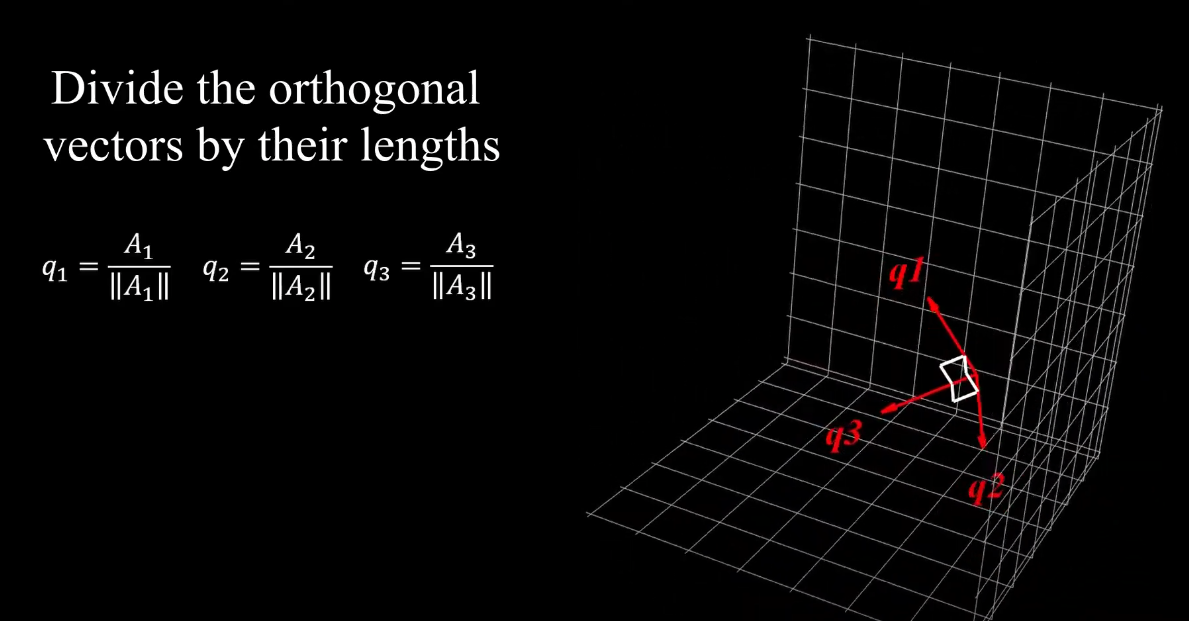 matrix = A (n개의 column 을 가진, 직교화 안된 )