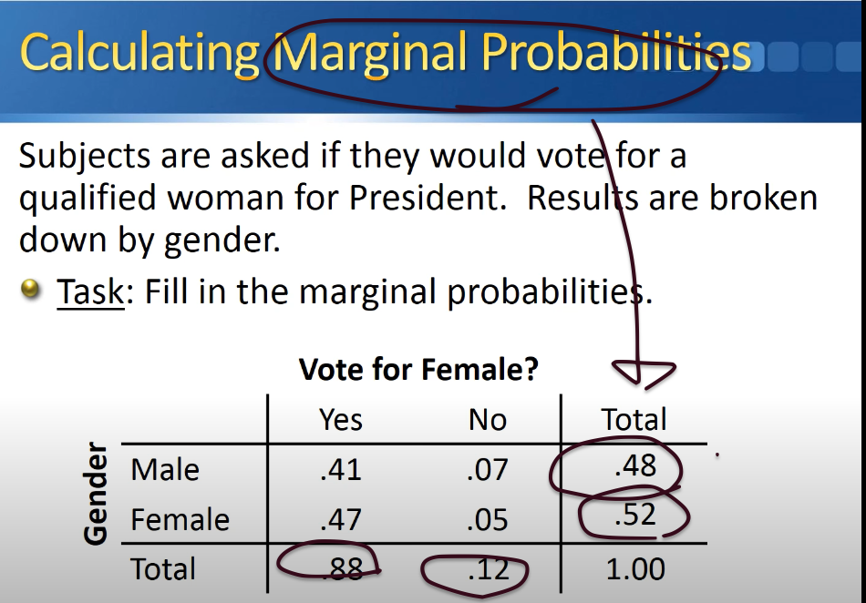 marginal probability, joint probability